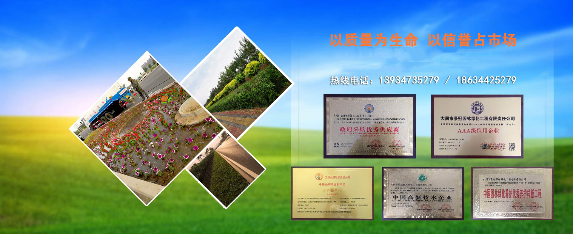 大同市景冠園林綠化工程有限責(zé)任公司是一家根植于設(shè)計、施工、植保養(yǎng)護、苗木花卉生產(chǎn)于一體的園林景觀企業(yè)。公司“以質(zhì)量為生命”、“以信譽求發(fā)展”這是公司一貫的經(jīng)營宗旨。并以創(chuàng)新,誠信,綠色,共享的發(fā)展理念,創(chuàng)造良好的企業(yè)環(huán)境。堅持愛綠,護綠,保綠的方針為城市增添一份綠色,用綠色擔(dān)當(dāng)生態(tài)建設(shè)使命是我們共同追求的價值和企業(yè)目標。以全新的管理模式,完善的技術(shù),周到的服務(wù),卓越的品質(zhì)為生存根本。幾年來我們致力于園林景觀植物領(lǐng)域的研究,在城市綜合體景觀,校園園林景觀,道路景觀,生態(tài)農(nóng)業(yè)景觀,美麗鄉(xiāng)村景觀,濕地景觀等多個領(lǐng)域參與規(guī)劃設(shè)計施工。不斷加大科技投入力度,加強人才的儲備,網(wǎng)絡(luò)技術(shù)的培訓(xùn),提升自主創(chuàng)新能力,不斷完善企業(yè)文化,用超前的技術(shù)制定出一套完整的園林植保技術(shù)管理方案。我們堅持以擔(dān)當(dāng)為使命,用戶至上,服務(wù)至上,秉持初衷,不忘初心,實實在在,心無旁騖做好植保養(yǎng)護主業(yè),打造屬于自己的企業(yè)品牌,好好服務(wù)客戶,打動客戶。